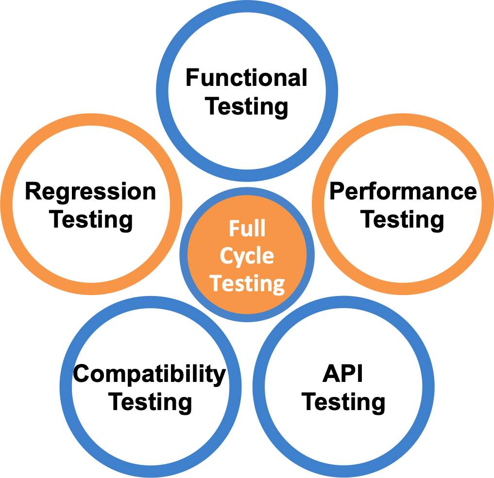 In our complete QA lifecycle, we conduct testing across all aspects from functional, regression, performance, API, compatibility, and others as needed to ensure optimized test coverage.